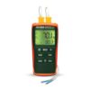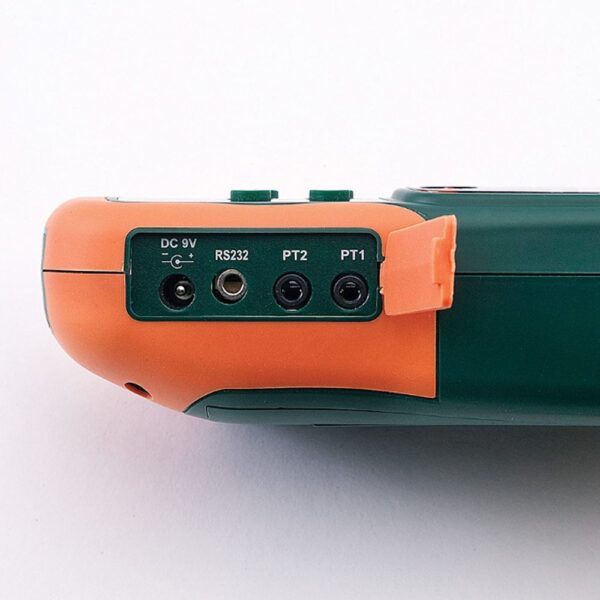 อุปกรณ์รองรับการเชื่อมต่อ Thermocouple Type K และ Type J เพื่อการวัดอุณหภูมิสูงสุดถึง 2372°F (1300°C) และเหมาะสำหรับการใช้งานที่ต้องการตรวจสอบอุณหภูมิหลากหลายสภาวะ เครื่องมาพร้อมหน้าจอ LCD แบบ Dual Display มี Backlight ทำให้อ่านค่าได้ง่ายแม้ในที่แสงน้อย