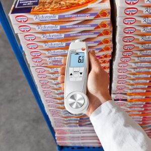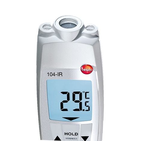 Testo 104-IR เครื่องวัดอุณหภูมิที่มาพร้อมกับเซนเซอร์วัดอุณหภูมิ 2 ชนิดในตัว คือ อินฟราเรด (Infrared) และ โพรบปลายแหลม จึงสามารถใช้งานได้หลากหลายรูปแบบ ไม่ว่าจะเป็นการวัดอุณหภูมิโดยไม่ต้องสัมผัสวัตถุหรือการวัดอุณหภูมิภายในอาหาร เช่น เนื้อสัตว์, ไส้กรอก ก็สามารถทำได้เช่นกันด้วยโพรบปลายแหลมที่สามารถพับได้ นอกจากนี้ตัวเครื่องยังมีขนาดเล็กกะทัดรัด พกพาได้สะดวก พร้อมด้วยมาตรฐาน HACCP และ IP65